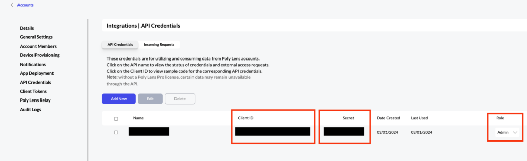 - You have administrative access to your Poly Lens tenant, in order to manage API Credentials (Managing Poly Lens Users / Account Members).