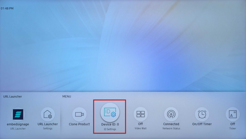 • Device ID (optional) — enter a specific MDC ID if your environment has configured a value other than 0 in your display’s settings. As described in the screenshot below, NetSpeek will by default send MDC commands to the display’s IP address with device ID of 0x00 which corresponds to an on-screen setup configuration of simply the number 0.